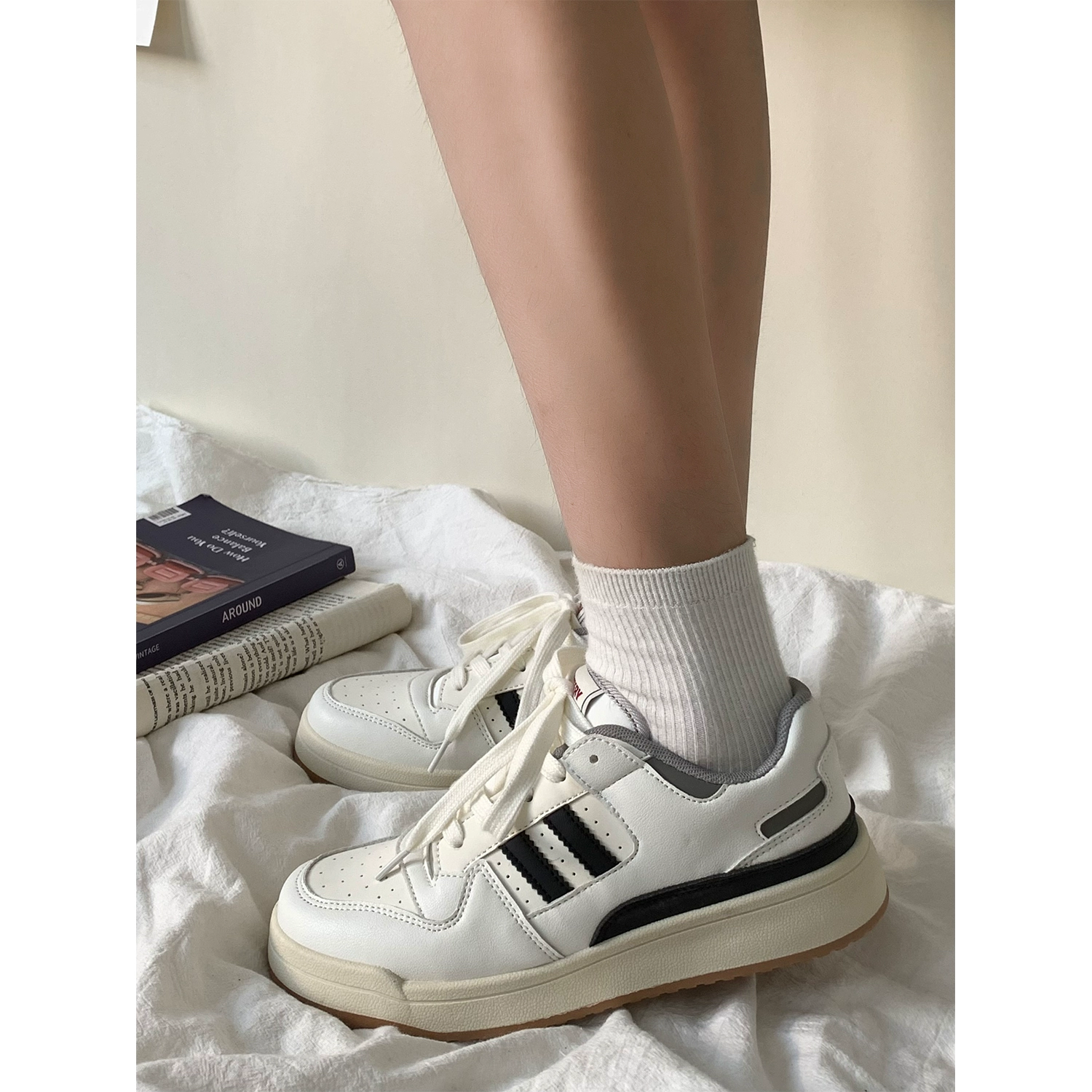 حذاء أبيض أنيق للغاية للطلاب ذو نعل سميك