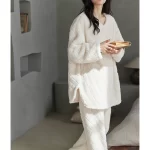 بيجامة فائقة النعومة للنساء شتوية مخملية مرجانية 2023 جديدة سميكة بالإضافة إلى مخملية بسيطة بلون سادة مجموعة ملابس منزلية