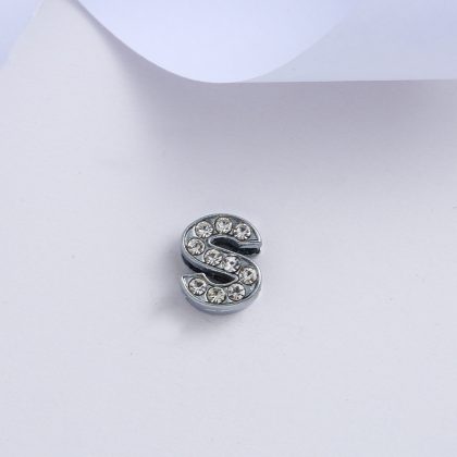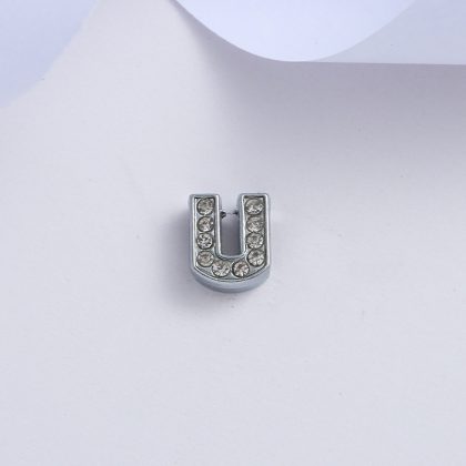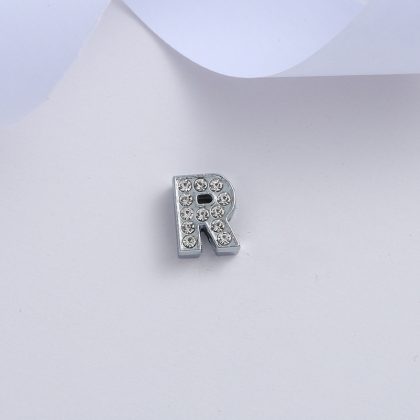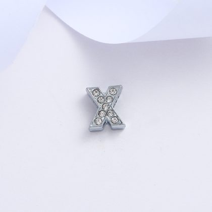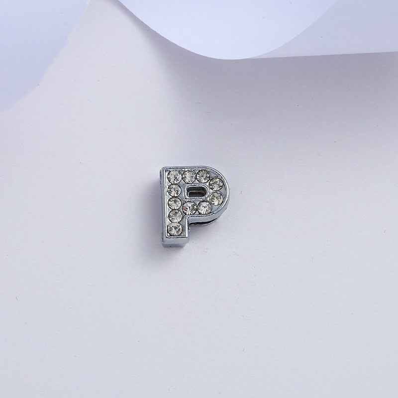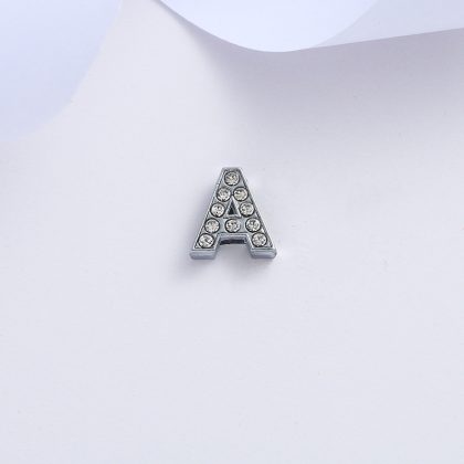 Supply 8mm chrome color inlaid white diamond letter jewelry accessories 26 letters bracelet pendant key accessories material wholesale