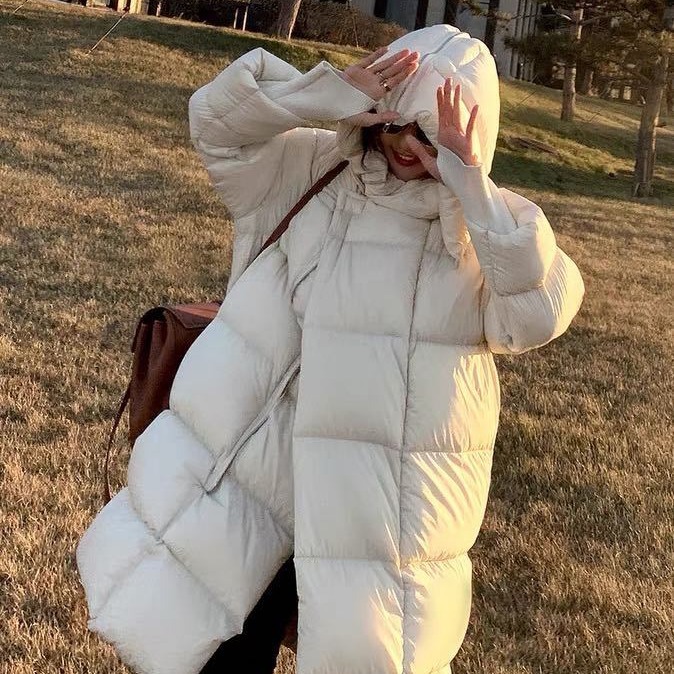 Supply Chain new white duck down hooded long down jacket 2024 Autumn Spring and Autumn ins style women's warm jacket