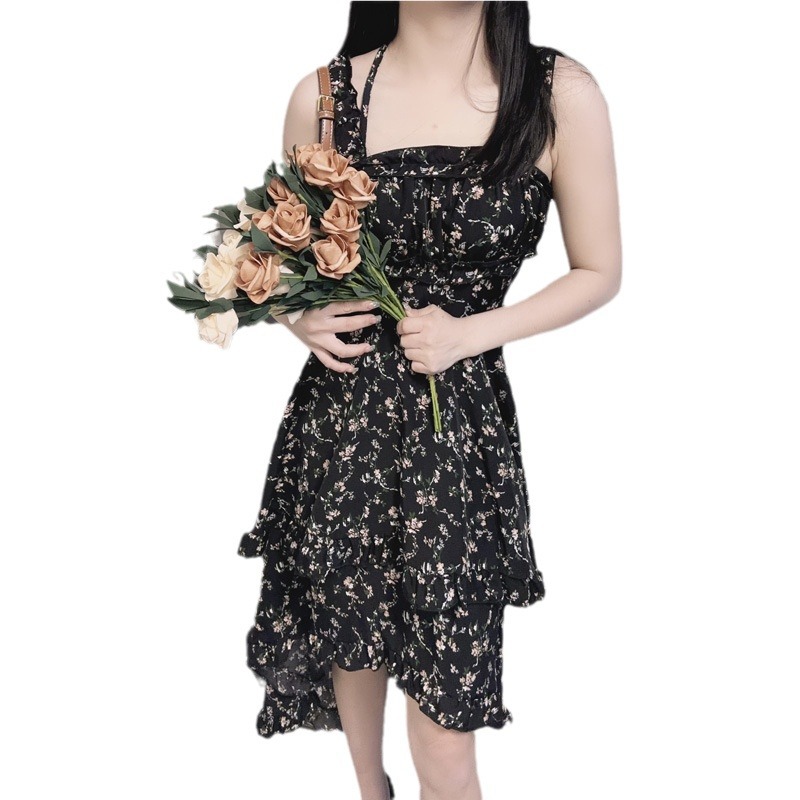 | nameOriginal | Suspender skirt square collar waist slimming irregular design sense dress 2024 summer new fashion floral |