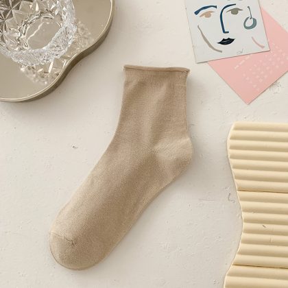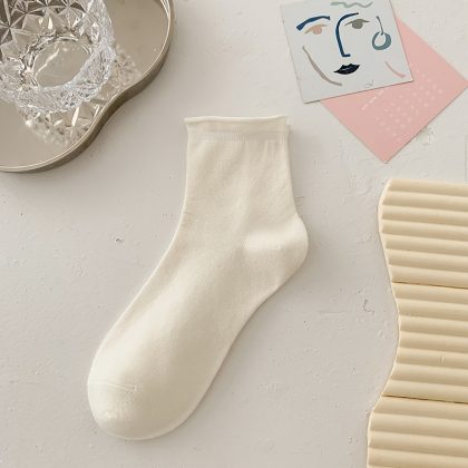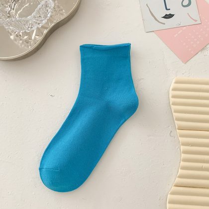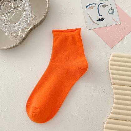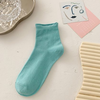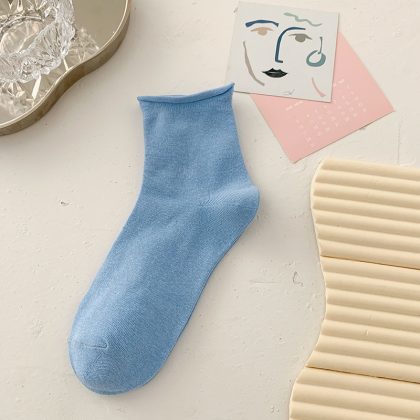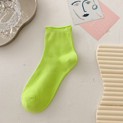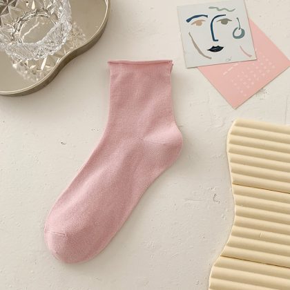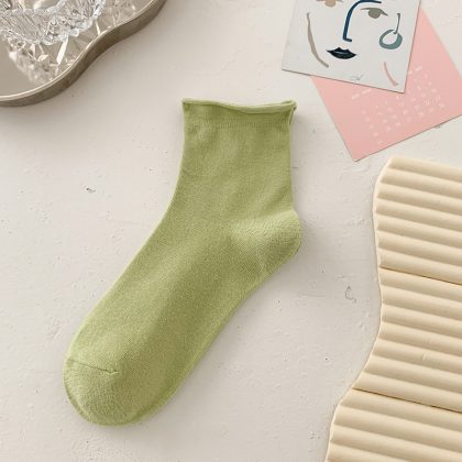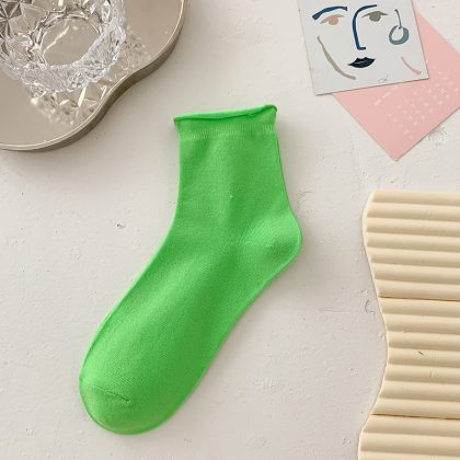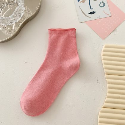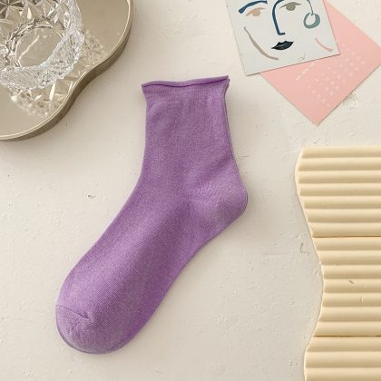 جوارب Suxinaimin النسائية الصيفية جوارب قطنية مجعدة بلون الحلوى جوارب مكدسة لطيفة على الطراز الياباني العصري