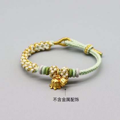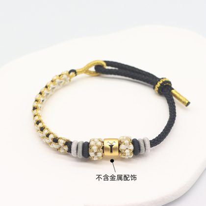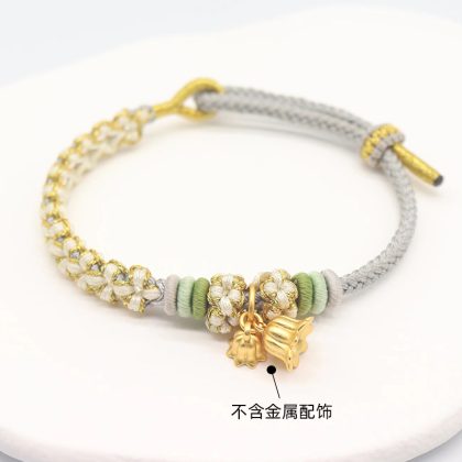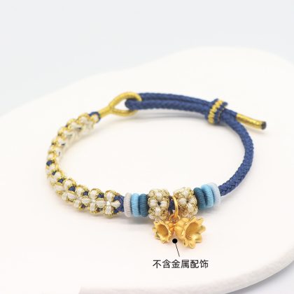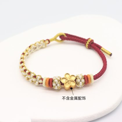Suzuki Flower Bracelet Handmade Woven Finished Peach Blossom Hand Rope Wearable Pendant Gold Beads Female Gift