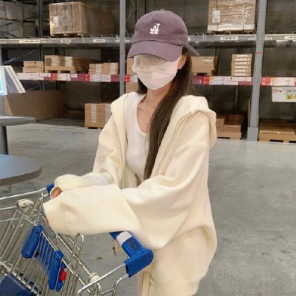 Sweater Coat Women's Spring and Autumn Cardigan Zipper Hooded Thickened Autumn and Winter oversize Navy Blue Top