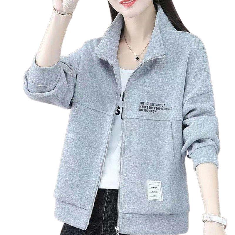 Sweater Women's Loose Casual Coat Elegant Thin All-match Short Long-sleeved Collar Zipper Cardigan Autumn and Winter Coat