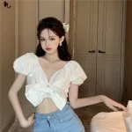 | nameOriginal | Sweet and chic high waist bow hottie white shirt |