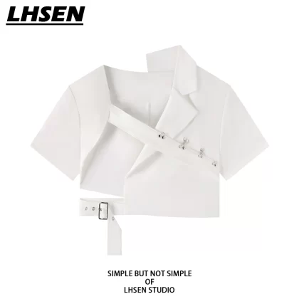 | nameOriginal | Sweet and cool black thin irregular suit jacket with short sleeves |