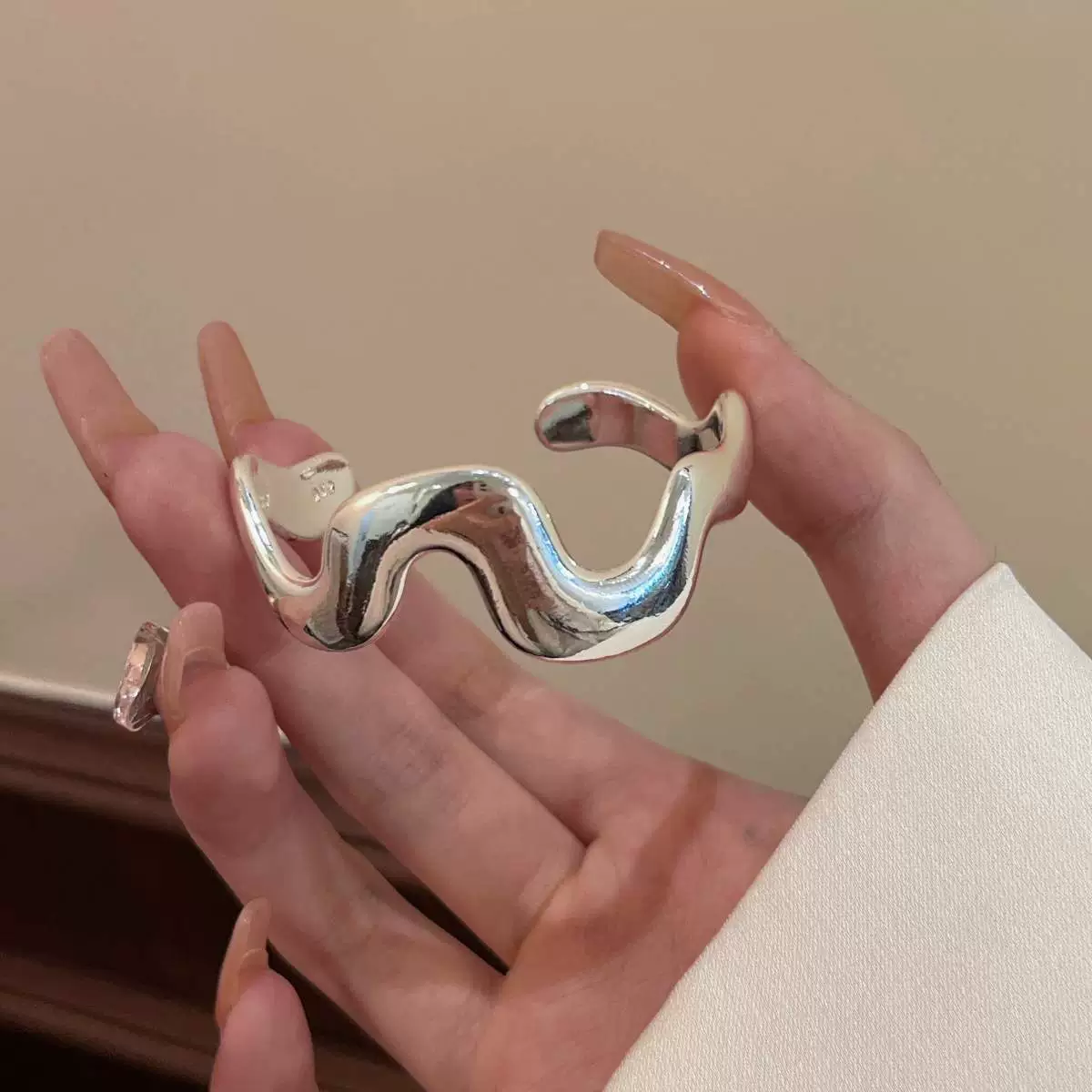 | nameOriginal | Sweet and cool geometric concave and convex wave bracelets for women stacked with temperament and frosted high-end S925 silver bracelet rings creative hand jewelry |