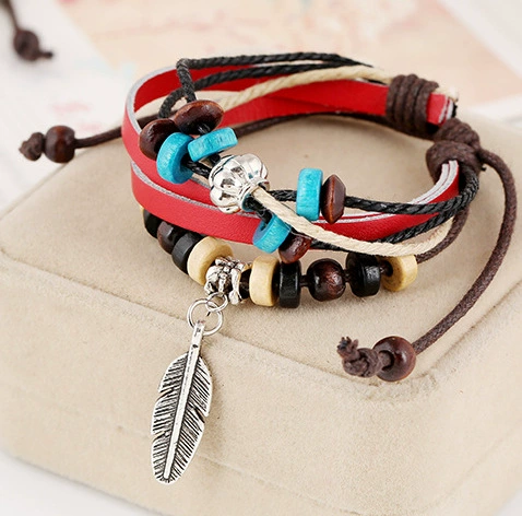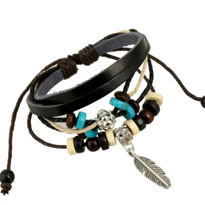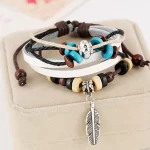 | nameOriginal | Sweet and cute beaded couple's leather bracelet with personality and temperament, versatile feather pendant leather bracelet, cross-border jewelry |