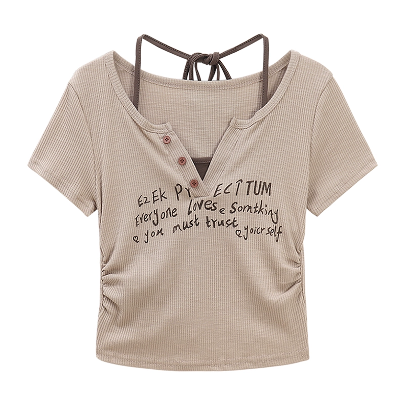 | nameOriginal | Sweet and spicy contrast short-sleeved summer letter print fake two-piece |