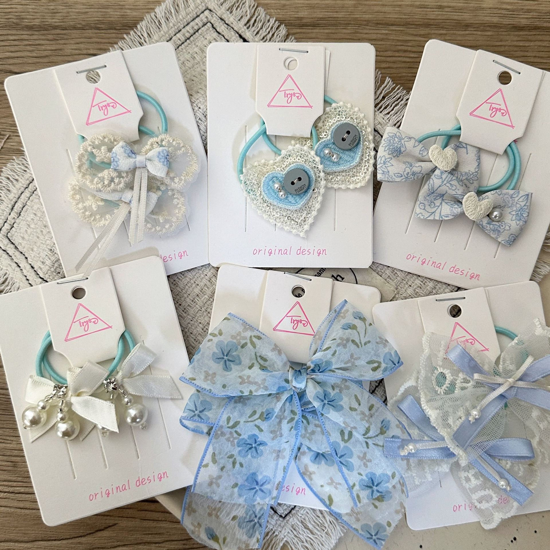 | nameOriginal | Sweet Blue Chiffon Lace Bow Children's Hair Ring Pair Set Baby's Hair Rope Hair Rope Small Rubber Bands |
