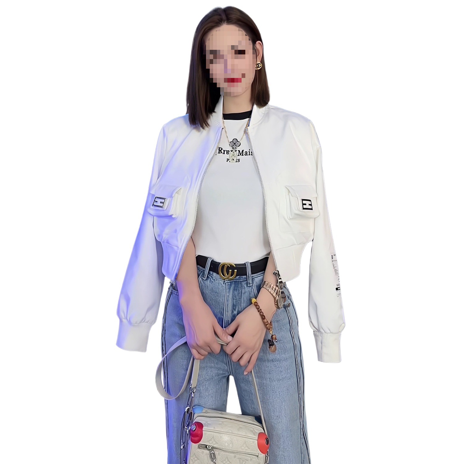 | nameOriginal | Sweet Cool Style Baseball Suit Design Vertical Collar Zipper Short Jacket Women's High Waist Slimming High-end Metal Printed Shoulder Pad |