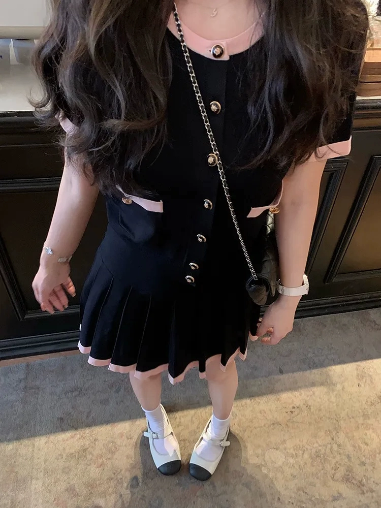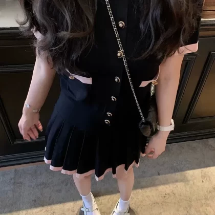 | nameOriginal | Sweet ice silk knitted cardigan short-sleeved top suit skirt |