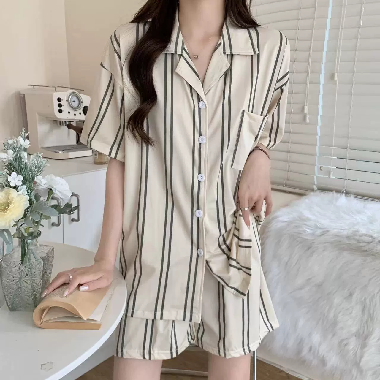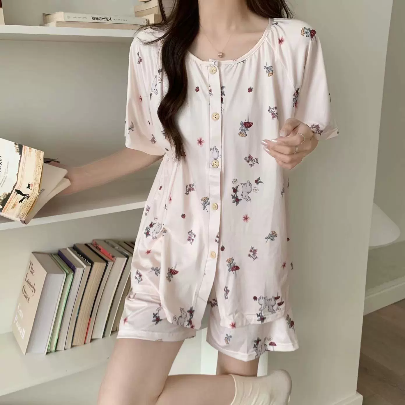 Sweet shorts two-piece set for women pure cotton with cute suspenders