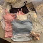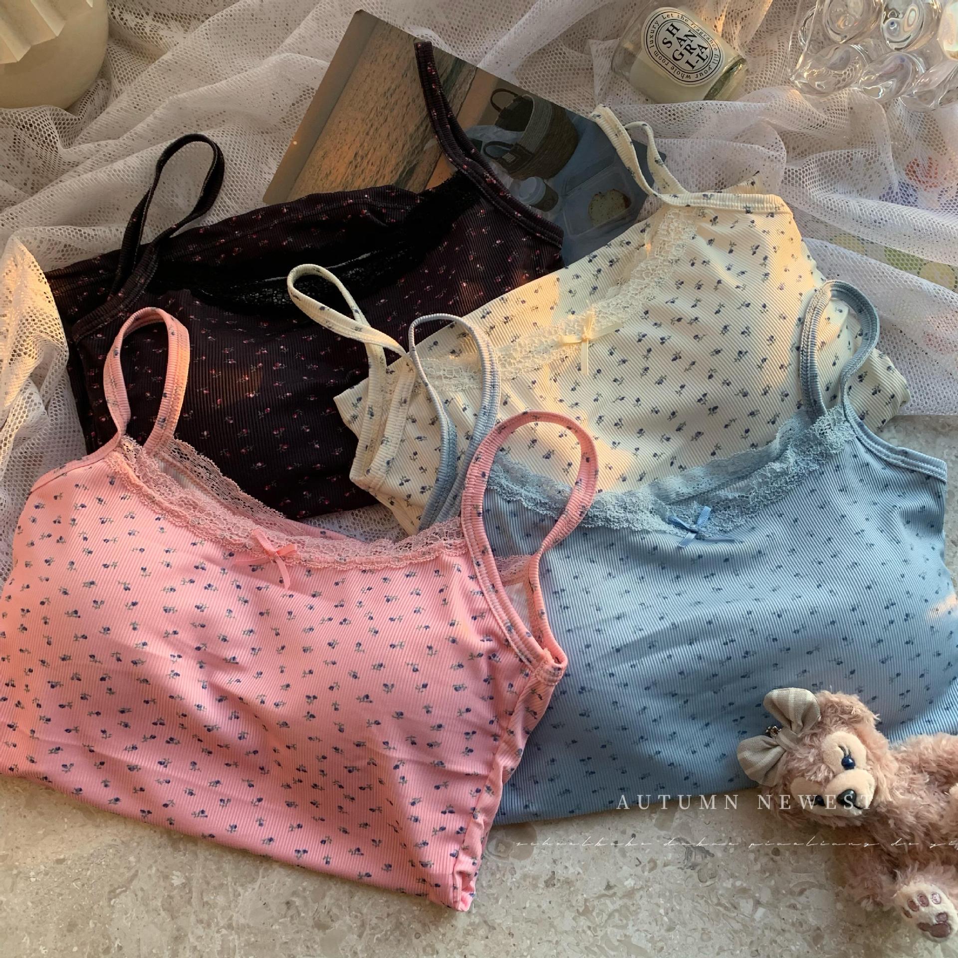 Sweet Spice Girl Blue Lace Camisole Women's Summer Bm Floral Inner Base Short Top with Chest Pad