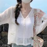 Sweet Style Summer Bow Thin Long Sleeve Knitted Sweater Women's 24 Years V-Neck Knitted Sunscreen Stacked Coat Cardigan