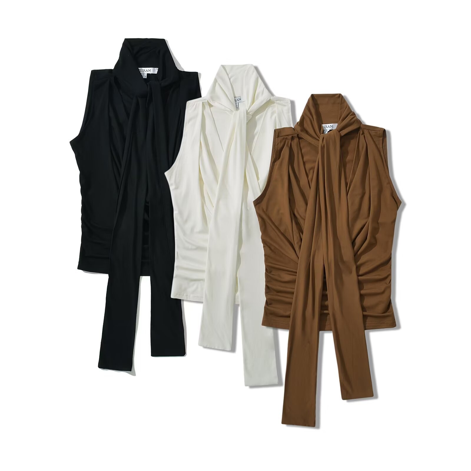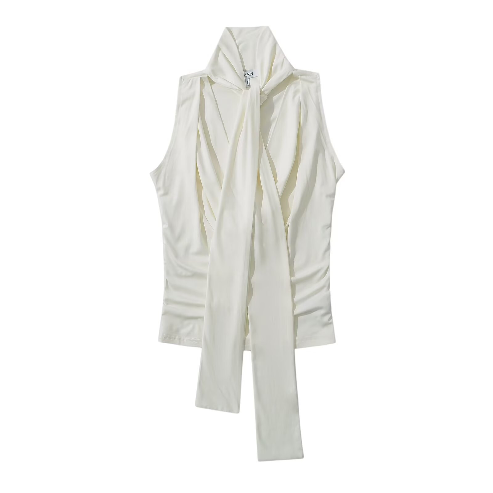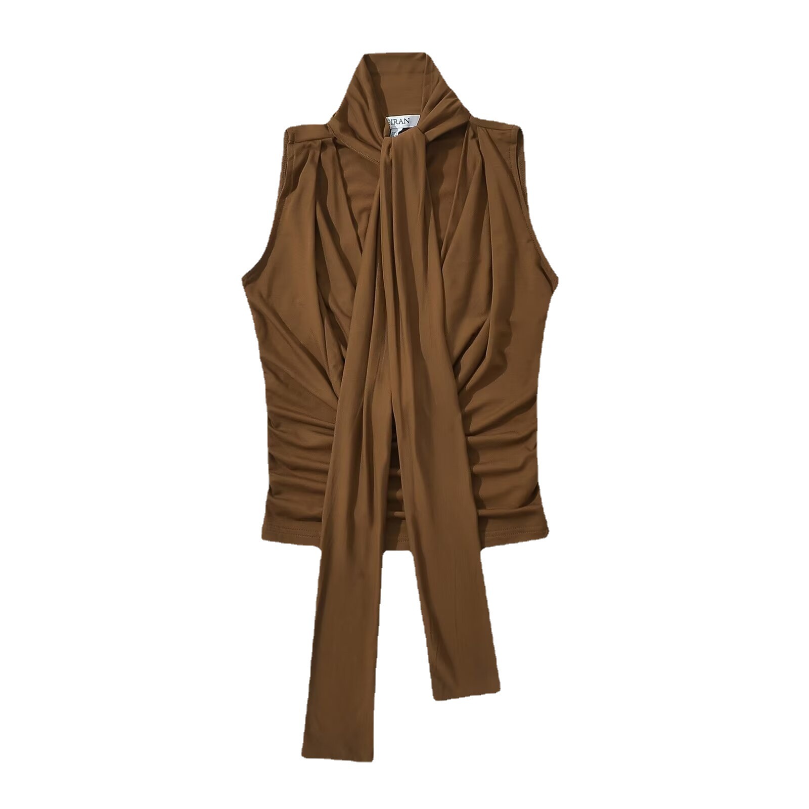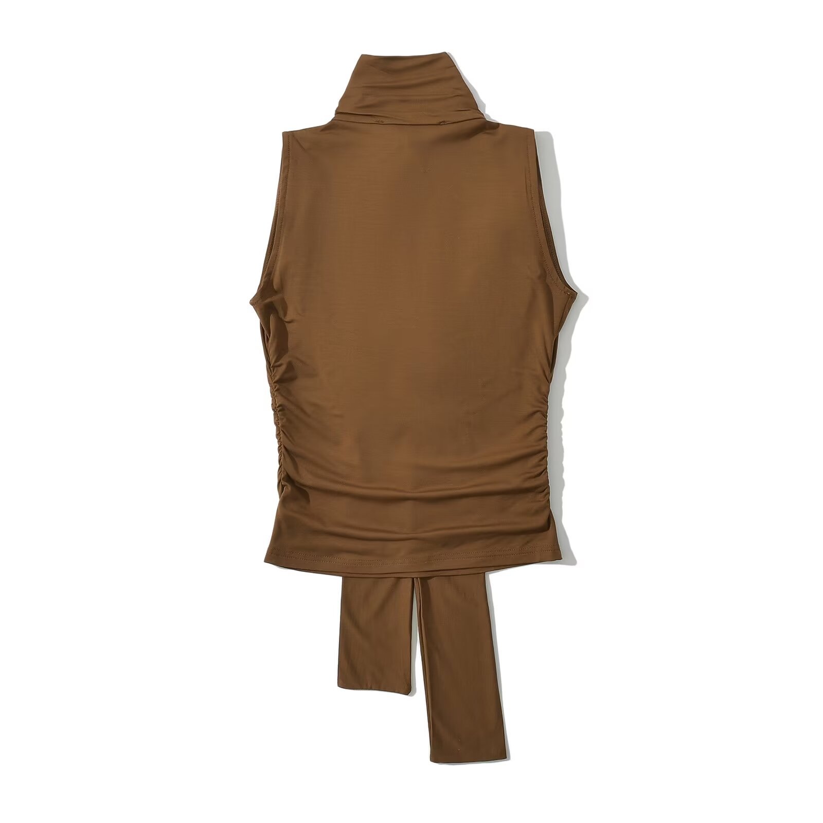 Swing Collar Sleeveless Vest Women's 2024 Summer New European and American Style Slim-Fit Pleated Slim-Fit Slimming Lace-Up Top