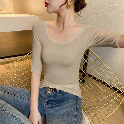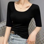 | nameOriginal | T Black Modal Mid-Sleeve T-Shirt Women's Short-Sleeved Thin Low Neck Slim-Fit Half-Sleeve Base Inner Top for Spring and Summer |