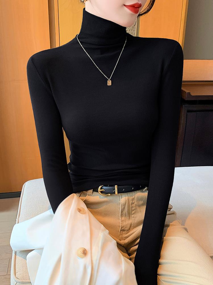 | nameOriginal | T black semi-high collar bottoming shirt women's spring autumn and winter interior 2024 new pile collar western style knitted high-end feeling |