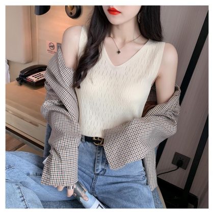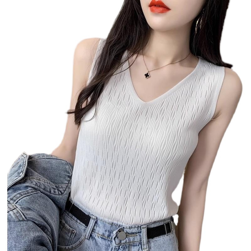 T Camisole Women's Outer Wear Summer 2024 Thin V-neck Slim-fit Suit Inner Base Ice Silk Knitted Top in