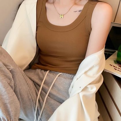 | nameOriginal | T Camisole Women's Suit with Chest Pad Outer Wear 2024 New White Cotton Base Sleeveless Black Top |