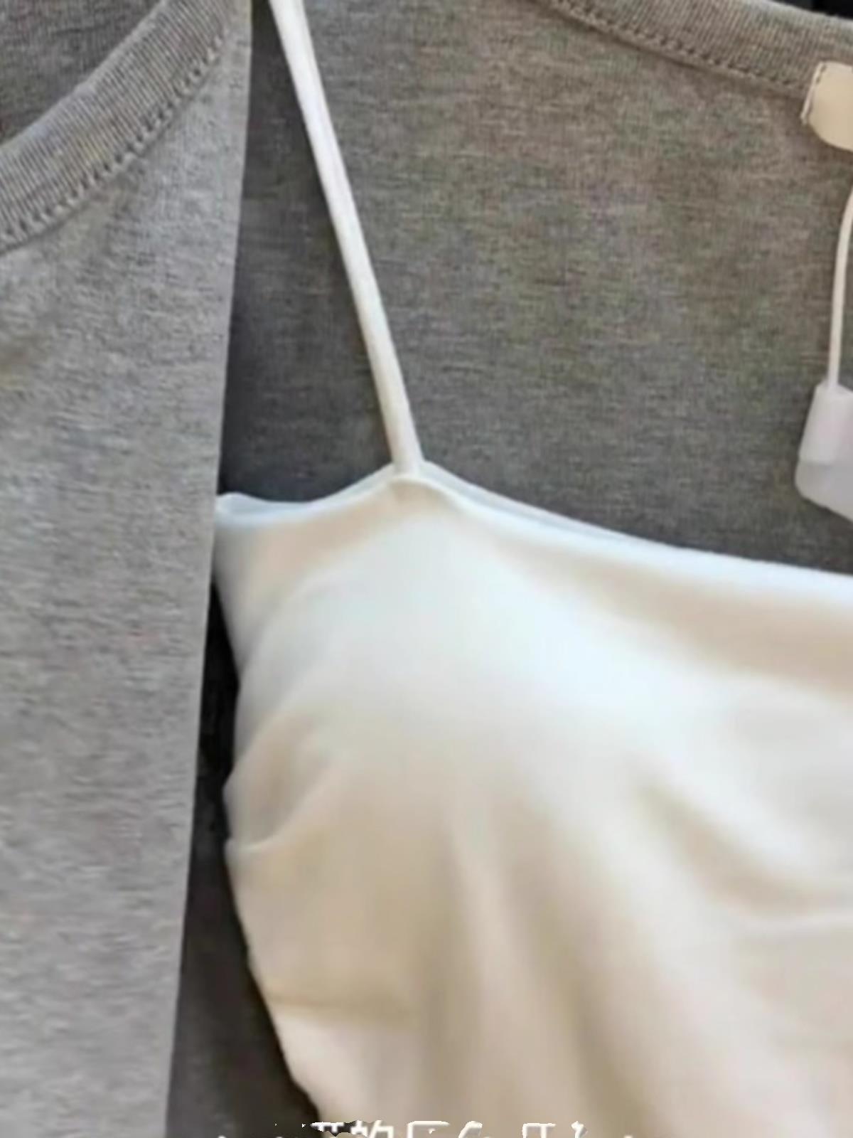 T Grey Ice Silk Knitted Sunscreen Cardigan Women's Thin Shawl Summer with Suspender Skirt Overshirt Two-piece Set