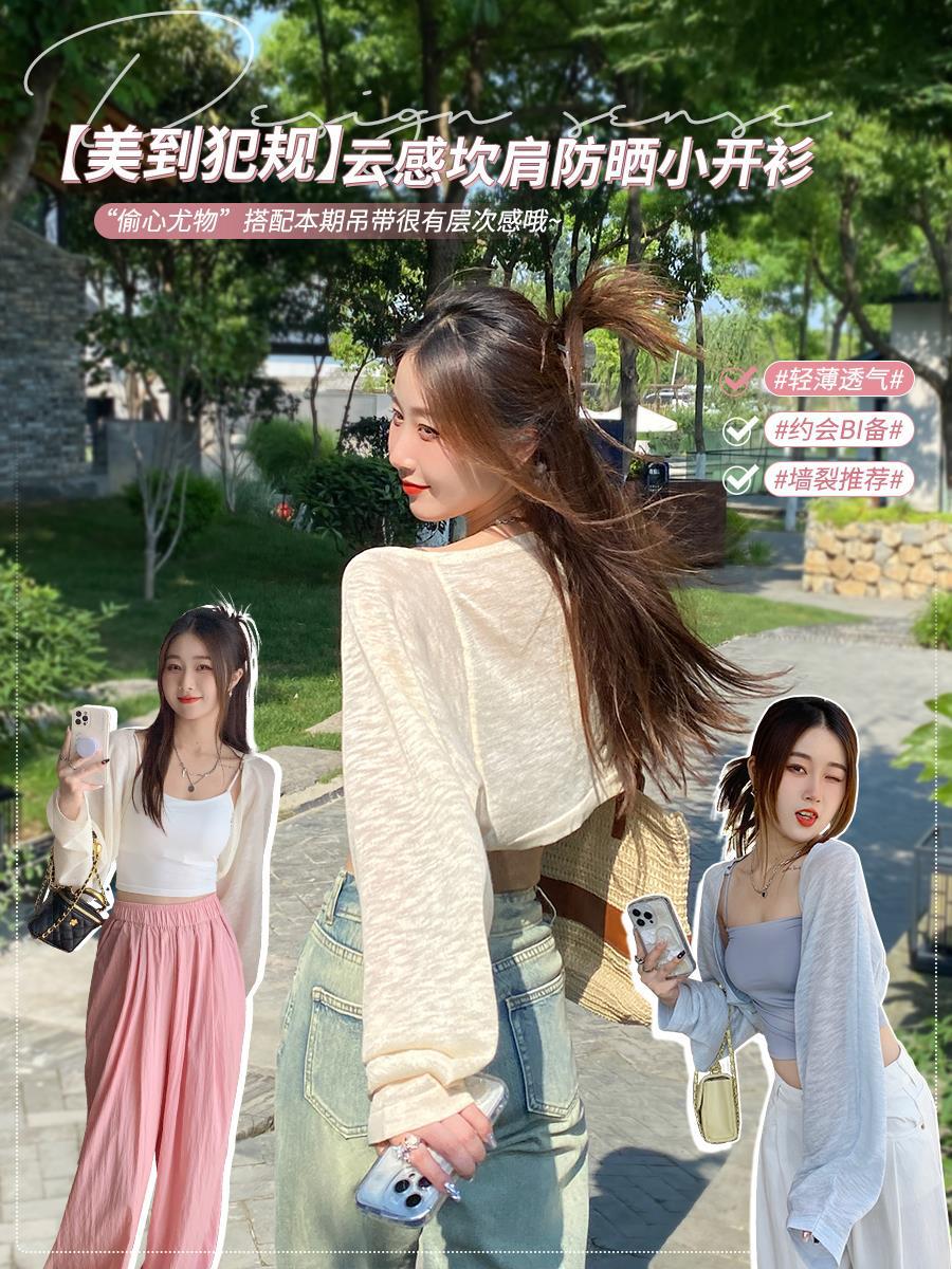 | nameOriginal | T Ice Silk Sunscreen Cardigan Women's Small Shawl Outer Wear Spring and Summer Thin Air Conditioning Blouse Small Waistcoat Short Knitted Top |
