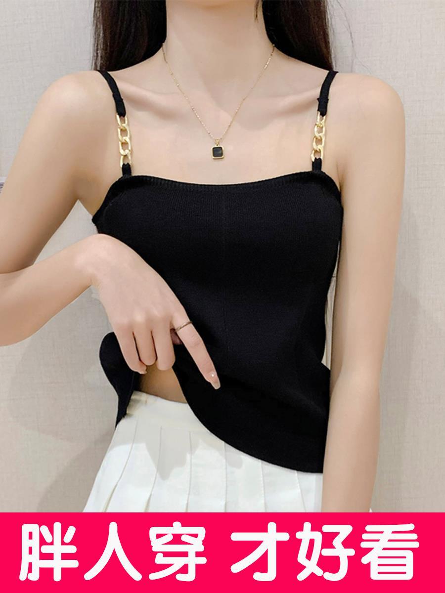 T plus size Ice Silk Camisole Women's Summer Wear Black Sleeveless Knitted Base Shirt Belly Covering Top Fat M