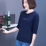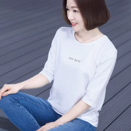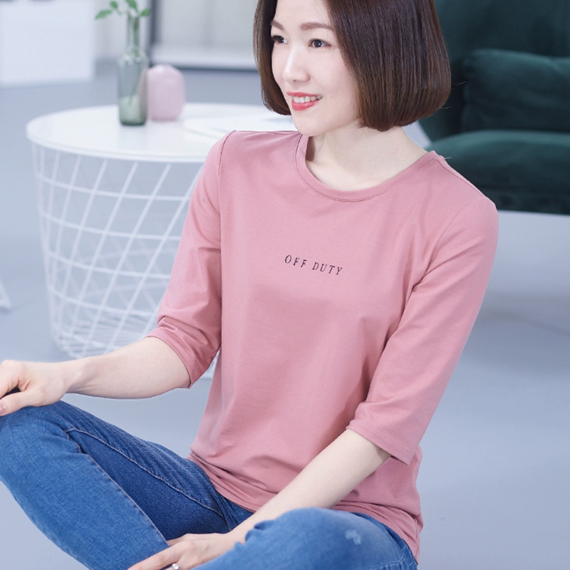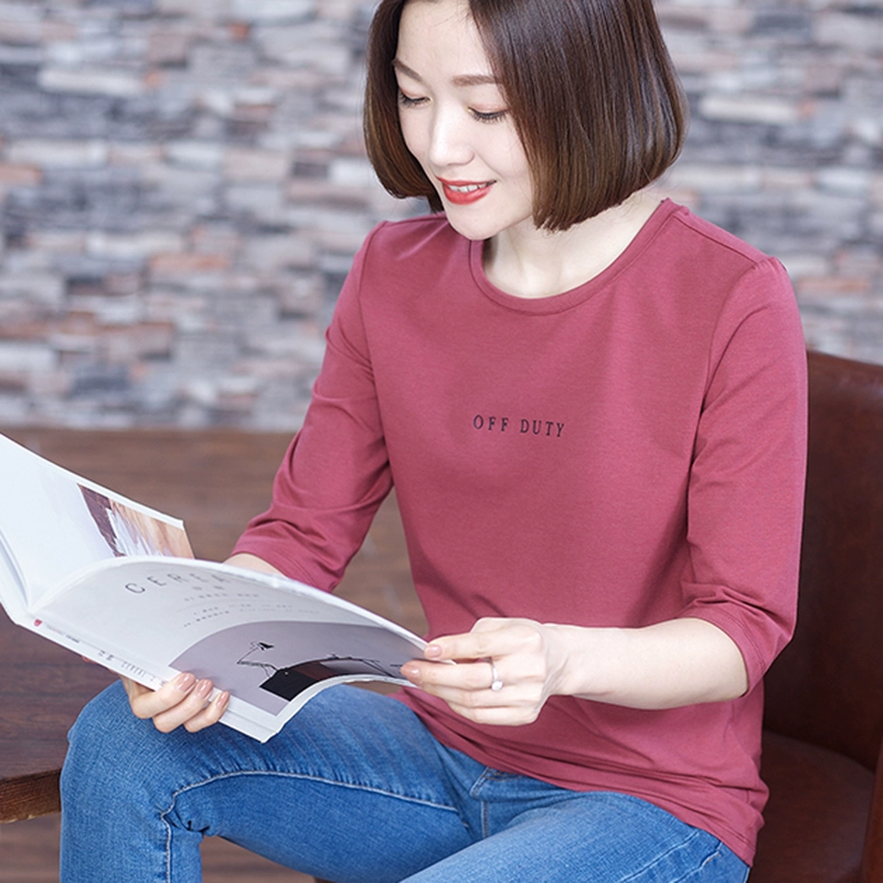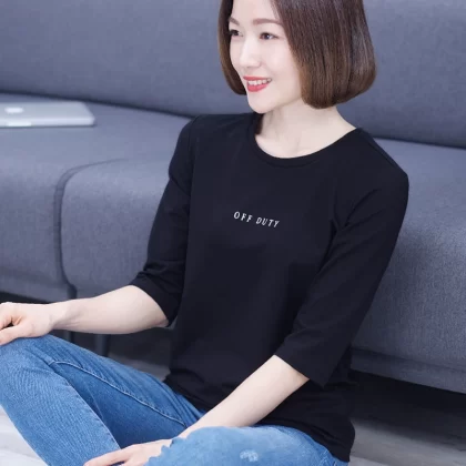 | nameOriginal | T-shirt black modal three-quarter sleeve middle-aged loose belly-covering mid-sleeve top women's mother's small shirt thin summer |