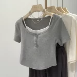 | nameOriginal | T-shirt square neck short-sleeved summer niche top fake two pieces |