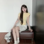 تيشيرت صيفي نحيف بكتف أيمن وأعلى وياقة دائرية وأكمام قصيرة