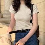 | nameOriginal | T Shoulder Short-sleeved T-shirt Women's 2024 New Summer Fashion Brand Crewneck Base Shirt Inner Slim-fit Slim-fit 1 Top |