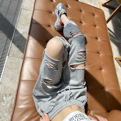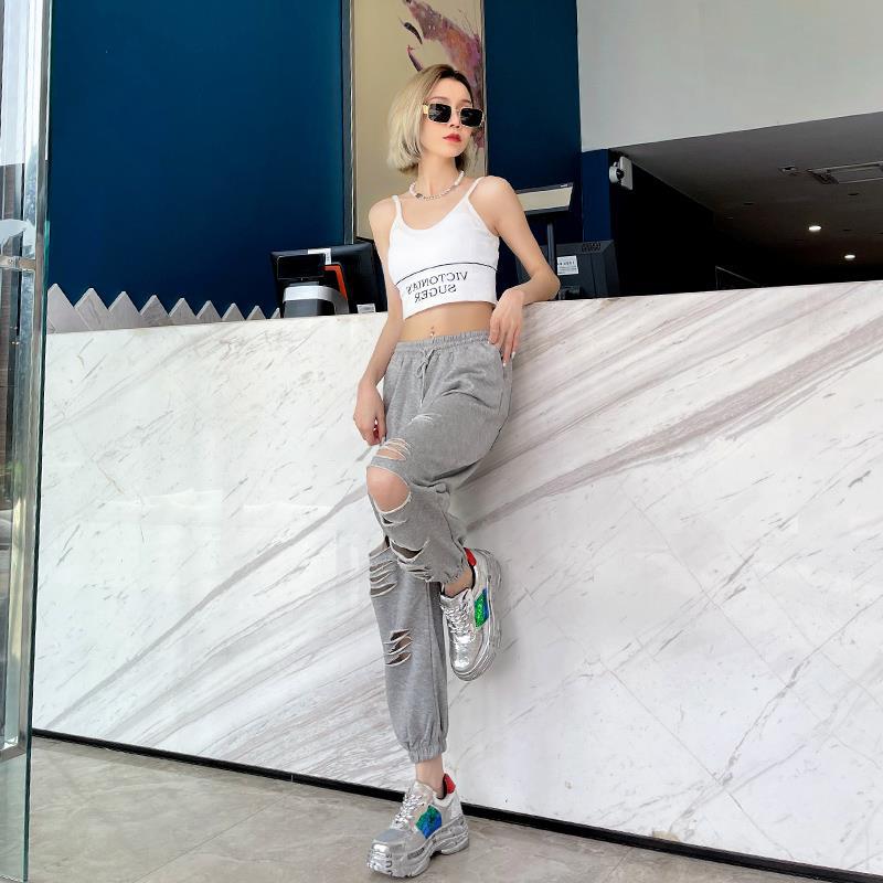 T Summer Thin Rapped Pants Grey Sweatpants Women's Pants Casual Pants Sports Pants Fashion ins Small Knee