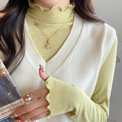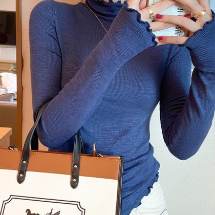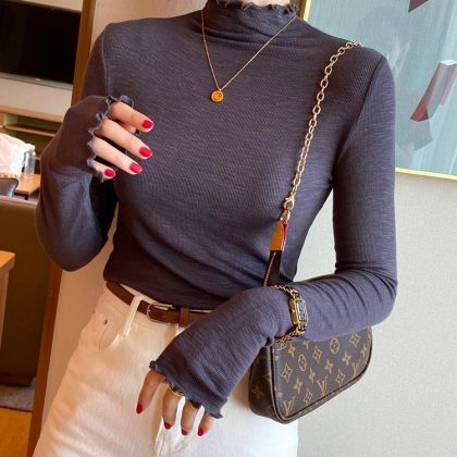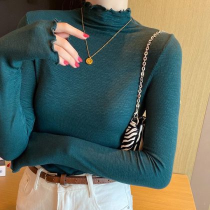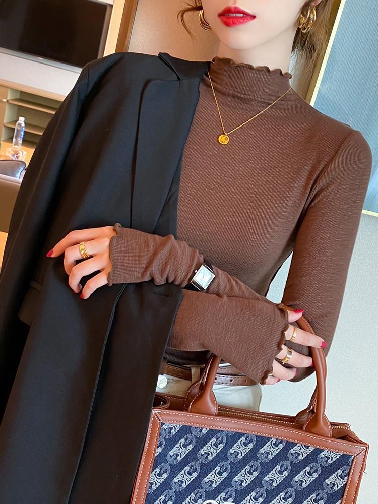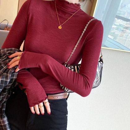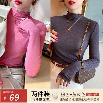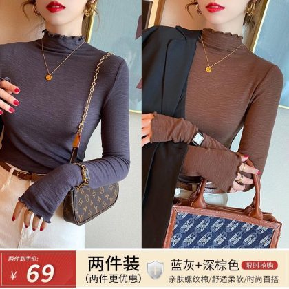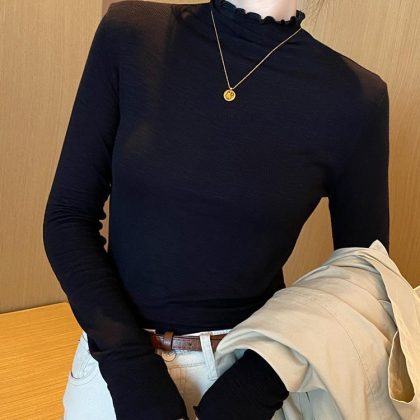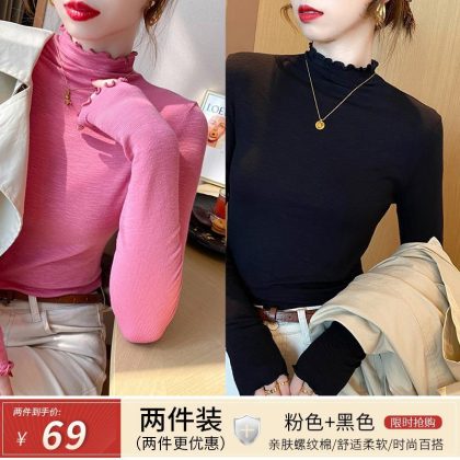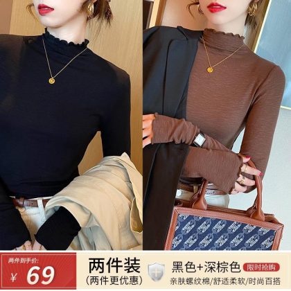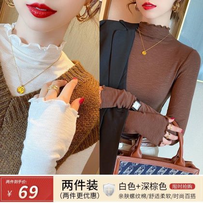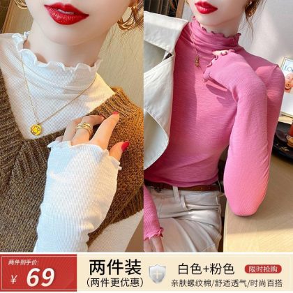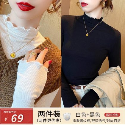 | nameOriginal | T White Base Shirt Women's Spring and Autumn Thin 2024 Autumn New Slim Fit T-Shirt Ear Edge Autumn and Winter Inner Long Sleeve Top |