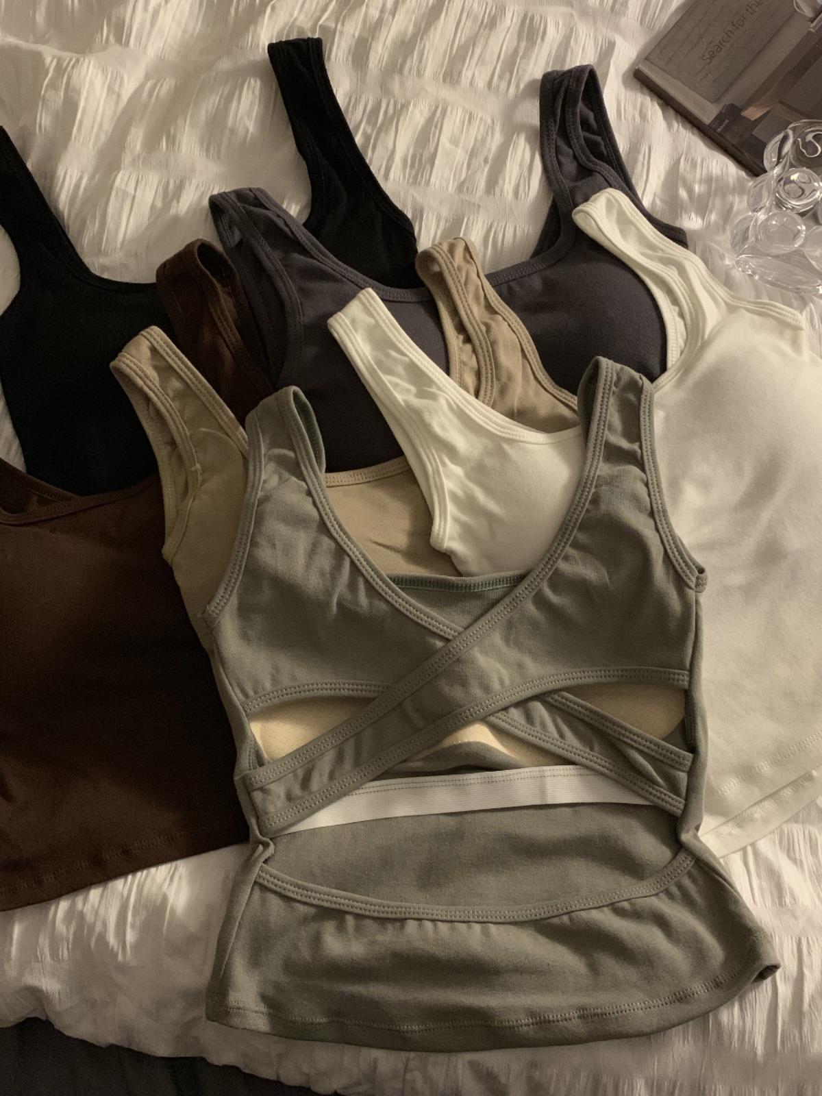 | nameOriginal | T White Cross Exposed Strap Chest Pad Vest Sling Women's 2024 Summer New Style Spice Girl Inner Wearing Outer Wearing Beauty Back |
