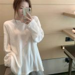 تي شيرت أبيض بأكمام طويلة للسيدات 2024 قميص قاعدة عصري أوروبي جديد أنيق داخلي عالي الجودة بلوزة فضفاضة