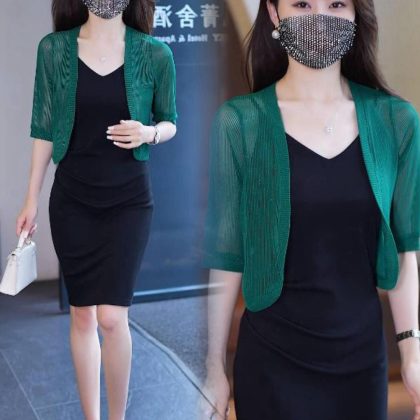T White Shawl with Slip Skirt Cardigan Sunscreen Blouse Women's Outer Jacket Small Waistle Air-conditioning Shirt Short Outer