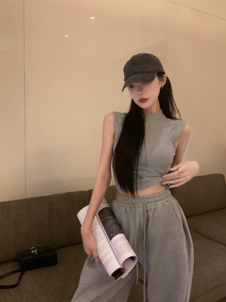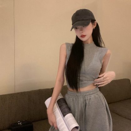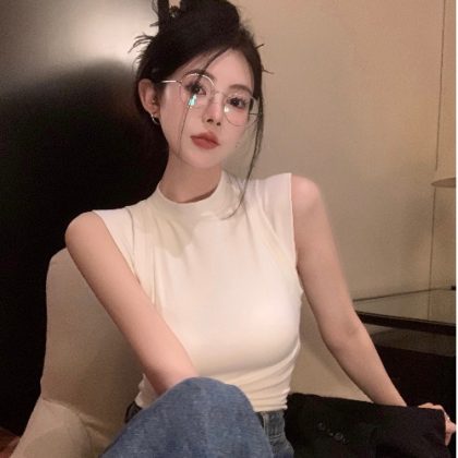 T White Short Vest T-shirt Women's 2024 Summer New Spice Girl Wear Inner Knitted Base Shirt Sleeveless Top