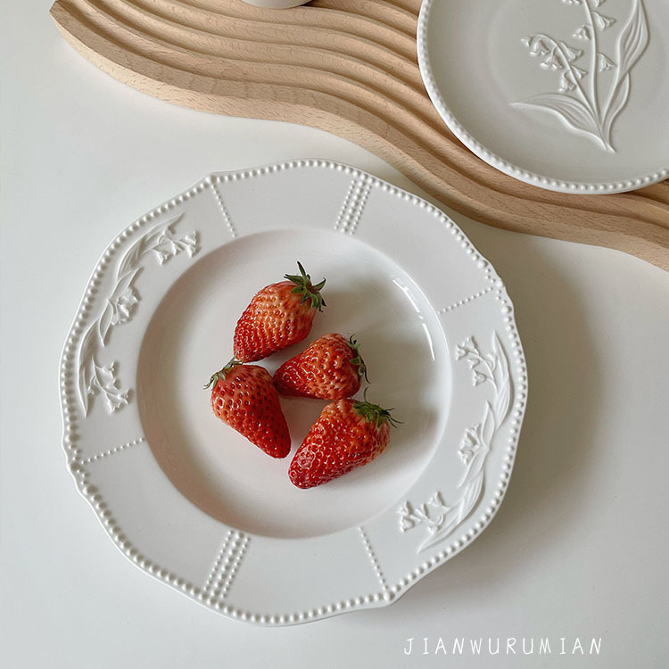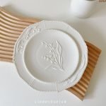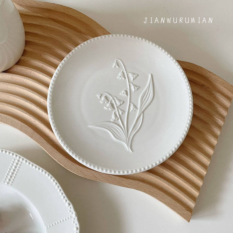 | nameOriginal | T9J5 wholesale mid-ancient relief Lily ceramic plate high temperature porcelain dessert cake plate flat plate dish breakfast |