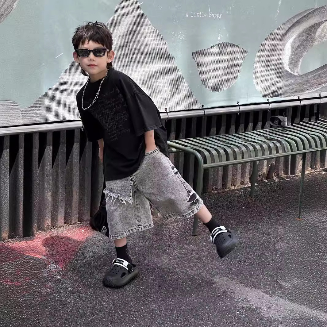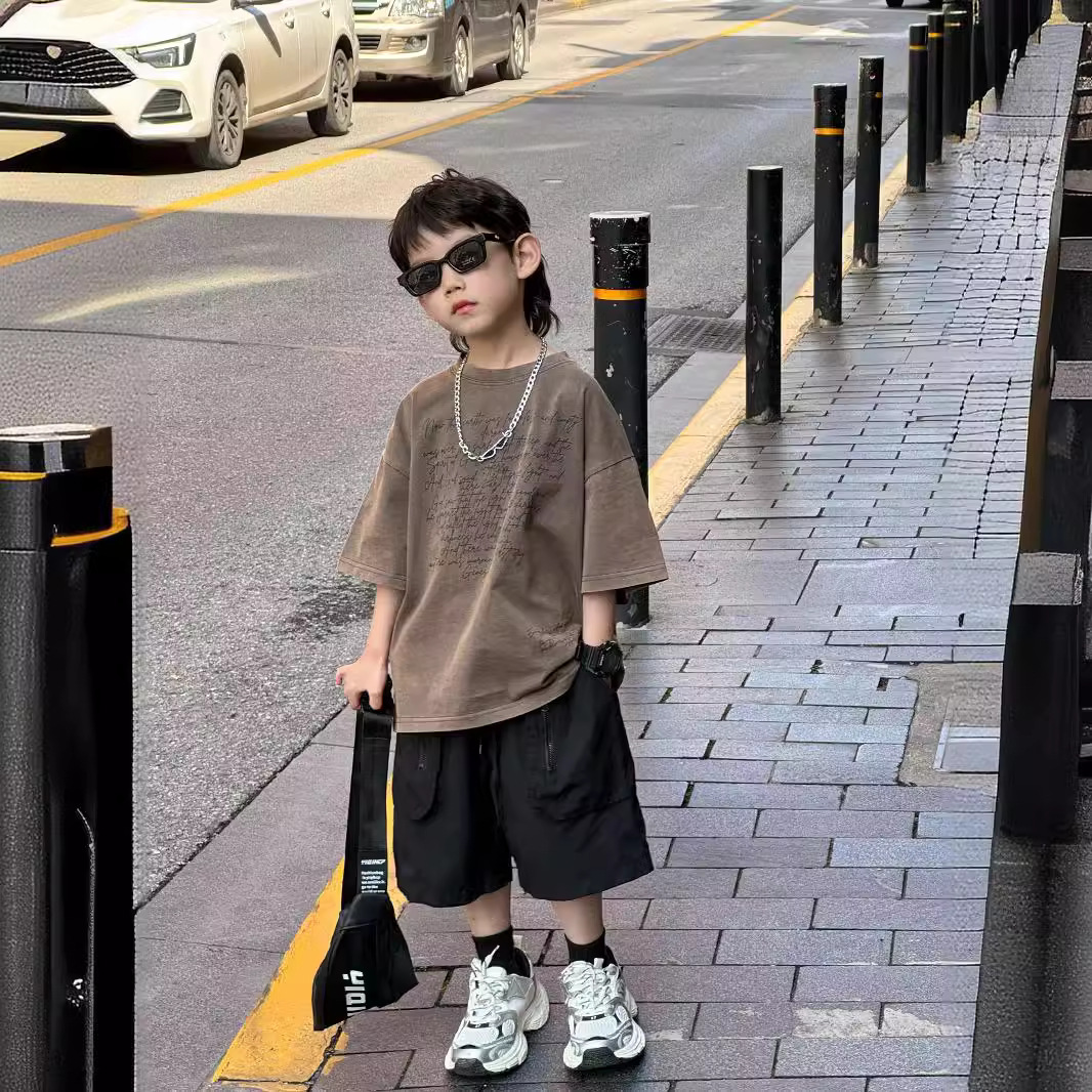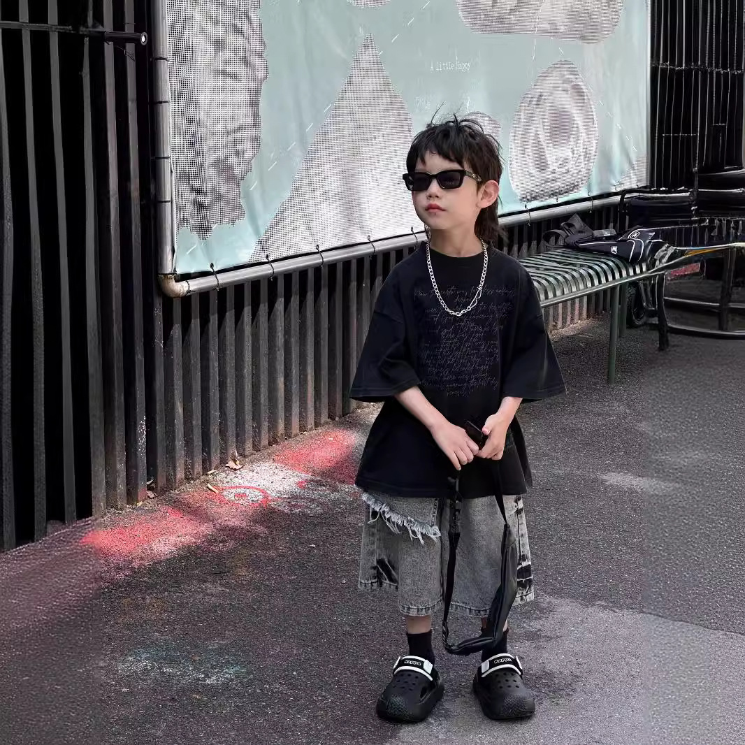 Tairu 2024 صيف جديد الكورية نمط بنين الأمريكية رسالة موضة تي شيرت أنيق قصير الأكمام للأطفال