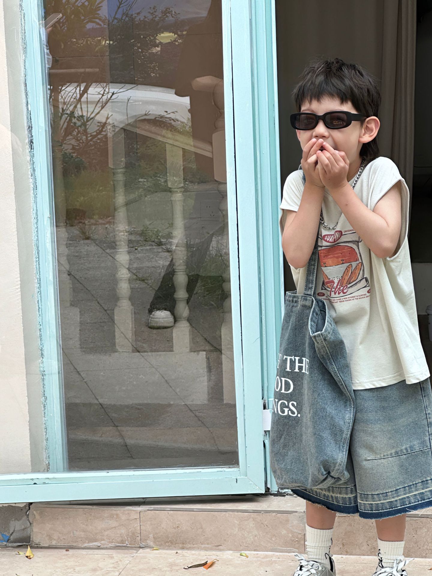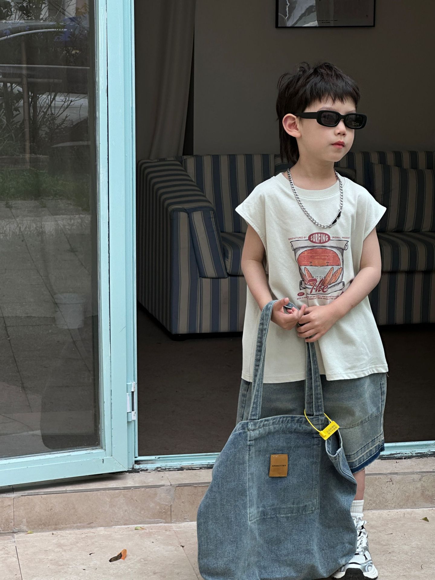 Tairu 2024 Summer New Korean Style Boys' Fashion Color Cartoon All-match Stylish Sleeveless T-shirt Top for Children