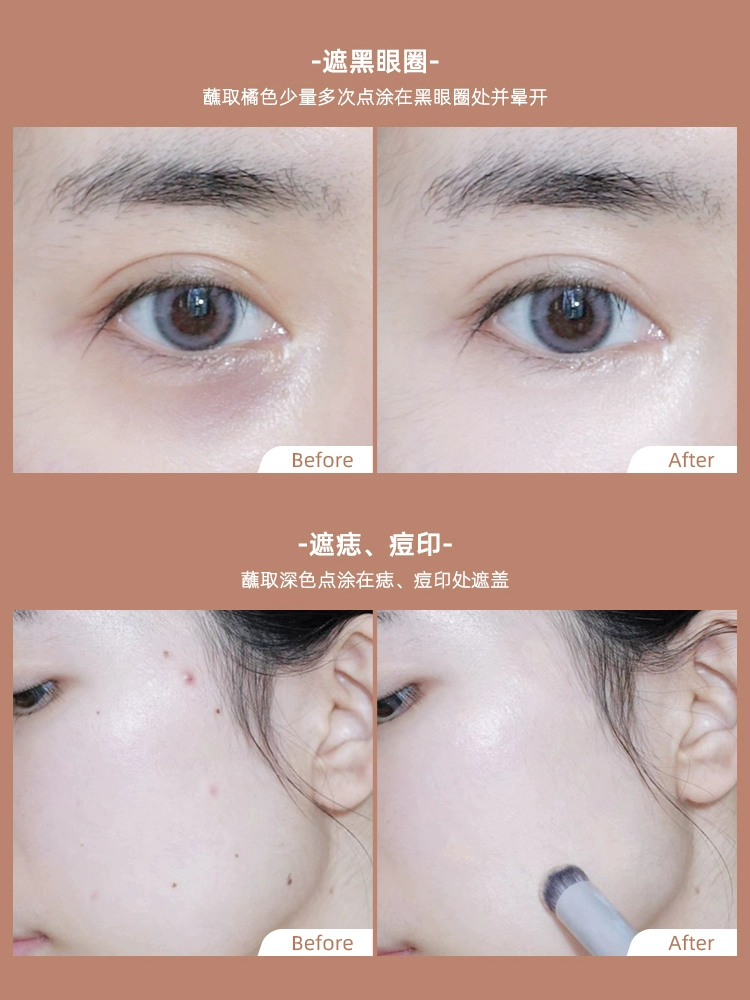 Tanya Concealer Pen Covers Spots, Acne Marks, Dark Circles, Tear Troughs, Moisturizing Double-ended Silkworm Pen, Brightening Concealer Plate for Women
