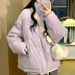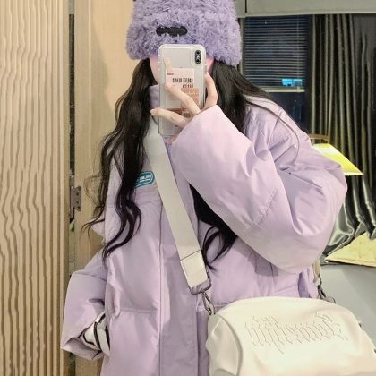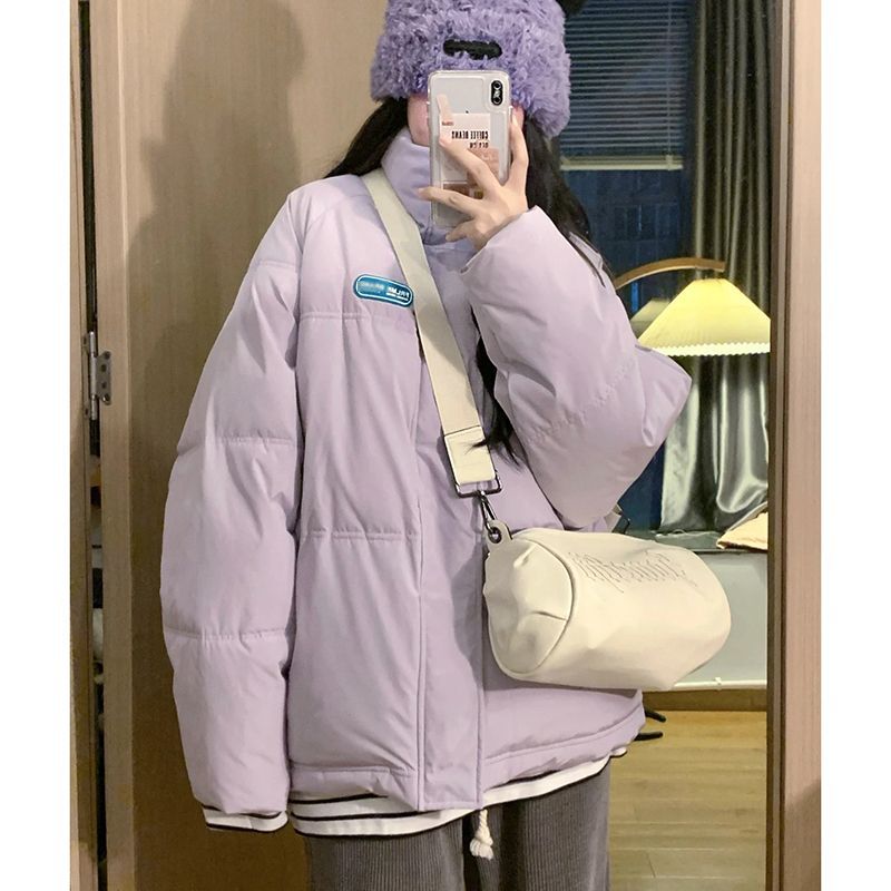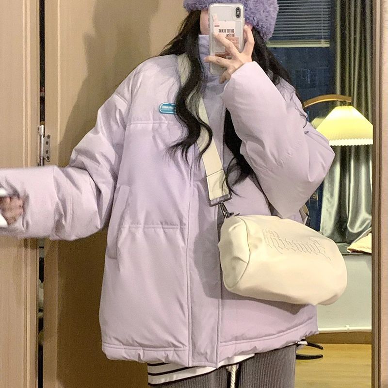 | nameOriginal | Taro purple stand collar down jacket 2023 new women's autumn and winter small Korean style loose short white duck down jacket |