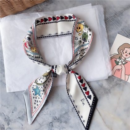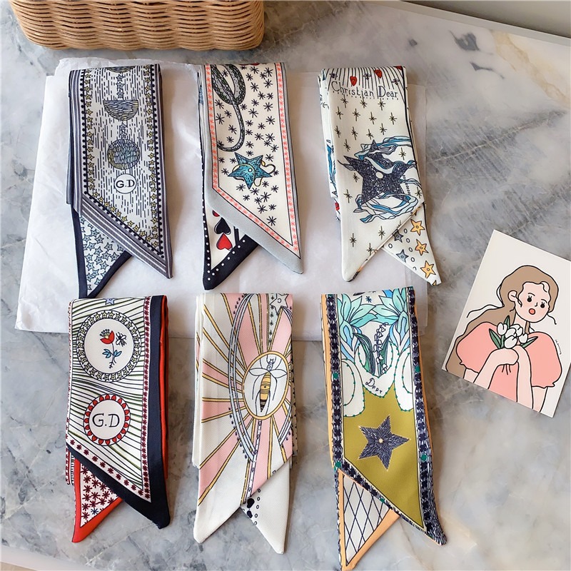 Tarot chic Silk Scarf Small Long Spring and Autumn Decorative Hair Band Korean All-match Tie Bag with Ribbon Small Scarf