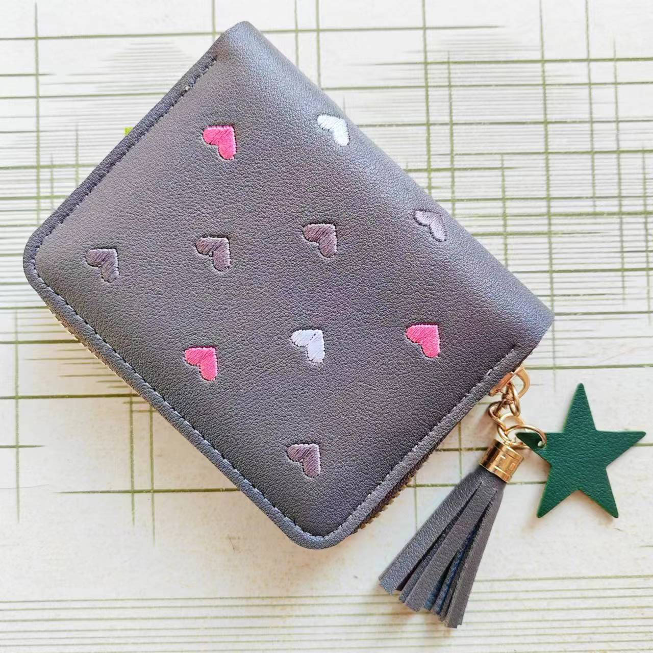 | nameOriginal | Tassel PU leather coin purse women's love card holder one fold multi-functional wallet large capacity ID holder card holder stars |