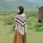 شال شرابة للنساء من الصوف على الطراز العرقي التبتي يونان