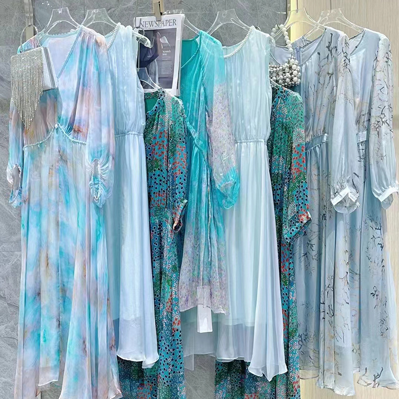 Tastini Brand Withdraws 24 Summer Heavy High-end Big Brand 100% Silk Silk dress Tail Wholesale