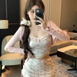 | nameOriginal | Tea Style Outfit Suit Floral Suspender Hip Cover Cardigan |
