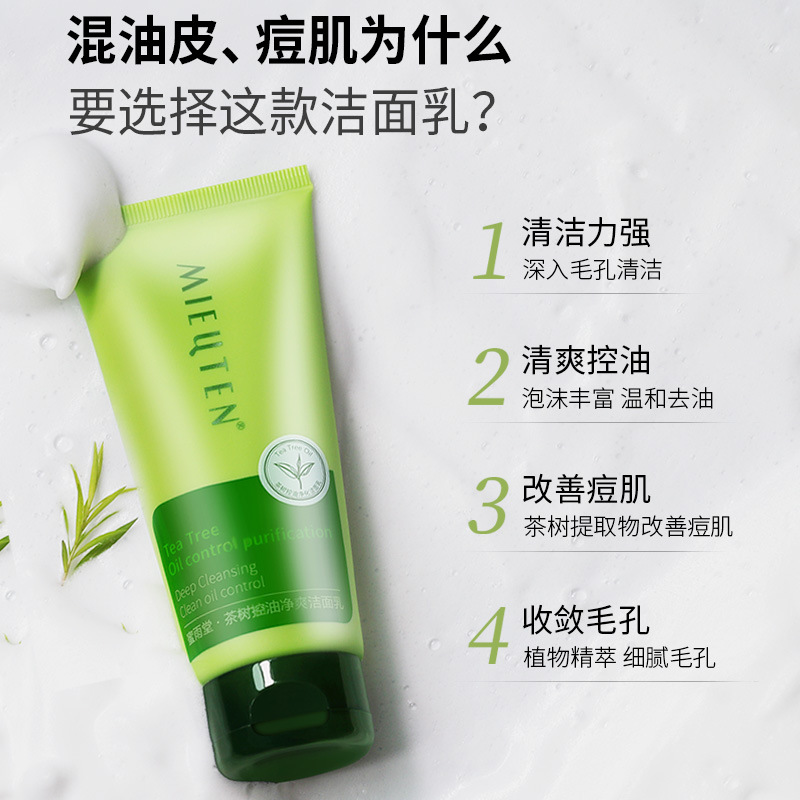 | nameOriginal | Tea tree oil control facial cleanser for male and female students anti-acne deep cleansing blackhead removal combination shrink pore oil |