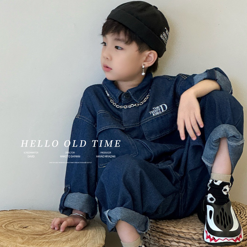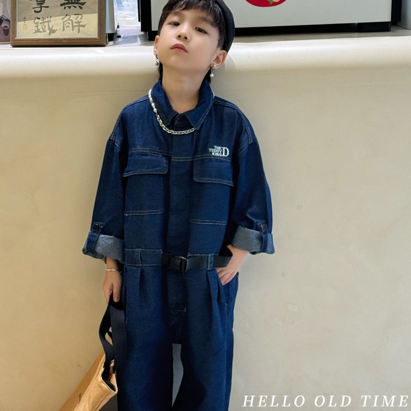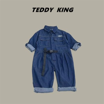 [Teddy King] 2024 Summer New Children's Denim Tooling jumpsuit TXB24165